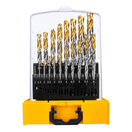 Набор Denzel Golden Tip 723003 состоит из 19 сверл по металлу диаметром 1-10 мм, изготовленных из стали P6M5. Угол заточки составляет 135°, что позволяет получать чистые и ровные отверстия в нержавеющей стали, чугуне, бронзе, алюминии, а также жестком пластике. Сверлам присвоен класс точности A1, что гарантирует высокое качество выполняемых работ. Оснастка характеризуется пониженным коэффициентом трения, что облегчает сверление и улучшает отвод стружки. Набор будет полезен дома и в мастерской.